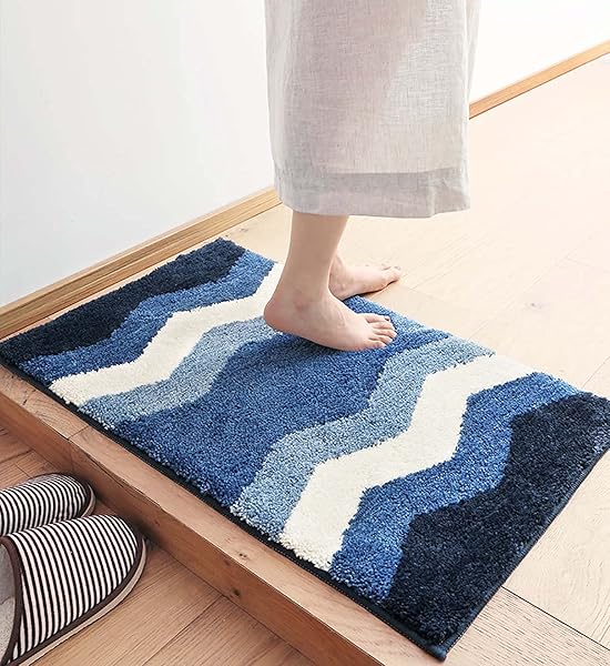 Joy-yong玄関マット室内おしゃれ 風水 北欧 バスマット 浴室足ふきマット (60cm*40cm, 水の波紋は運を助けます-青)