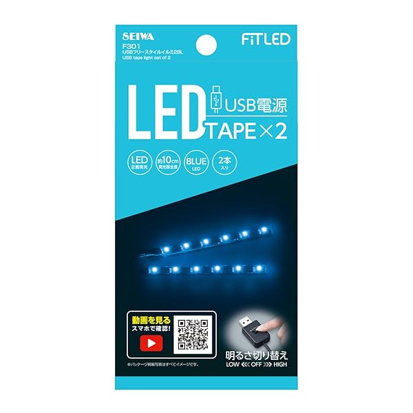 セイワ(SEIWA) 車内用品 室内用LEDイルミライト USBフリースタイルイルミ ブルーLED 2本入 F301