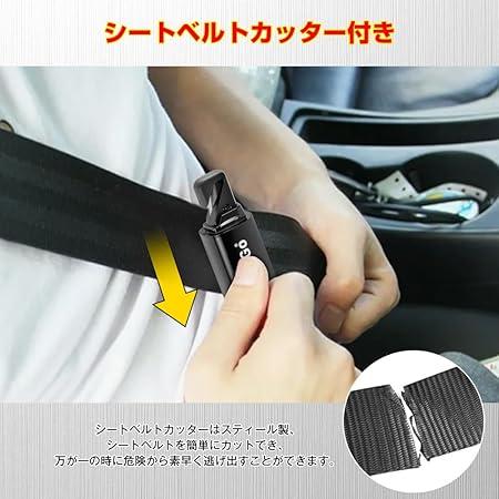 【シートベルトカッター付き】シートベルトカッターはスティール製、シートベルトを簡単にカットでき、万が一の時に危険から素早く逃げ出すことができます。使い方も簡単で、女性や年配の方の力でも問題なくウィンドウの破砕、シートベルトのカットができます。