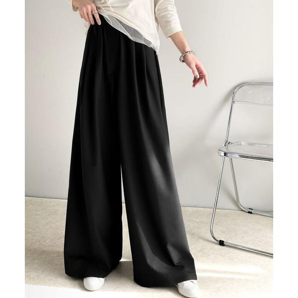 商品名:大人のこなれ感を演出。ツイルハイウエスト2タックワイドスラックスパンツ