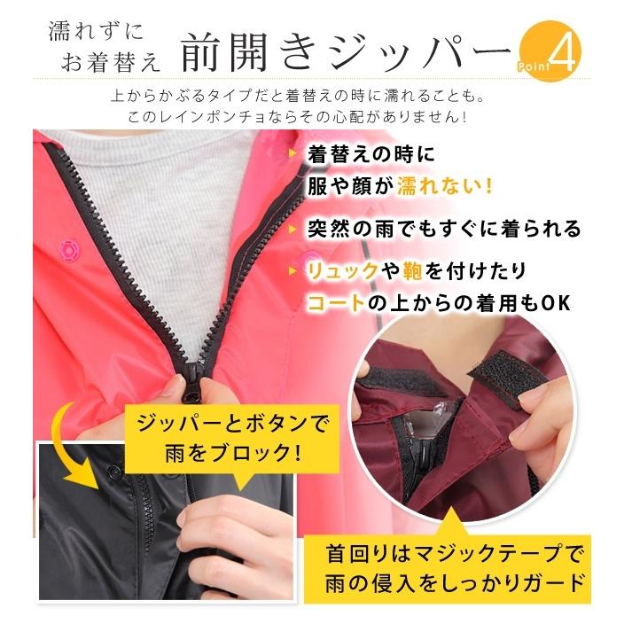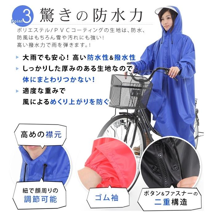 在庫処分!大きいつば 袖付き レインポンチョ 自転車 前開きジッパー レイ