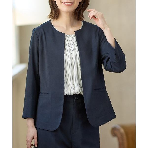 キーワード:ジャケット ノーカラージャケット レディース シワになりにくい 洗える 無地 冷感 オフィスカジュアル キレイめ デート ビジネス 夏 婚活 大人カジュアル