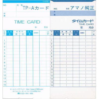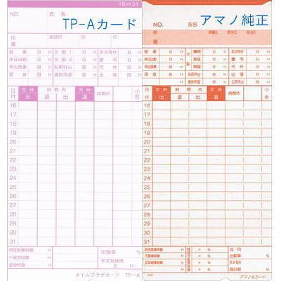 AMANO/アマノAカード互換タイムプラザオリジナルカード ●締め日:月末(31日)/15日締め用●入り数:100枚×10●対応機種:AX・BX・BC・CRX・DX・EX・RS各シリーズ全機種 (旧メカ式タイムレコーダーでもお使い頂けます) ●AMANO/アマノAカード互換品 格安!●新品・中古タイムレコーダー対応