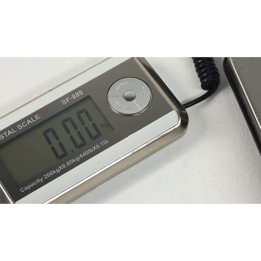 最大計量:200kg、計量範囲:0.05kg〜100kg、最少表示:0.1kg 、電源:単4電池4個(航空制限のため、電池は付属しておりません)