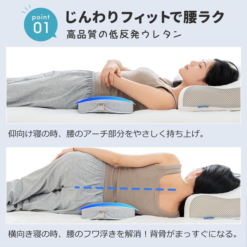腰周りをしっかり覆うロングサイズの就寝用腰枕です。男性の体格にも対応可能。