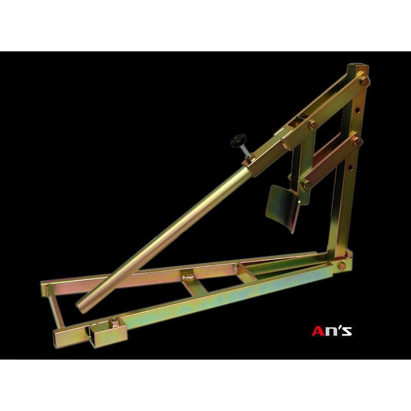 持ち運びやすい折りたたみタイプのカート用ビートブレーカーです。使用後はハンドルレバーが取り外しができ、折りたたんでコンパクトに収納可能です。タイヤ交換の必需品、使いやすさ、コンパクトさを考え作られました。本体寸法 : 使用時 幅195 × 奥行550 × 高さ370 mm 収納時 幅200 × 奥行590 × 高さ100 mm