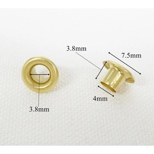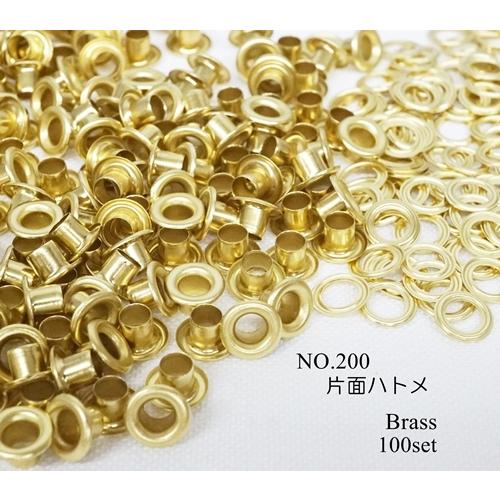 〇素材 真鍮〇カラー 真鍮生地色〇サイズ 内径3.8mm 外径7.5mm 足3.8×4mm (写真を参照)〇個数 100個NO.200番の片面ハトメです。お得な100組入りです。キリンス処理を行っていない真鍮生地商品です。小物などレザークラフト、ハンドメイドにぜひお使い下さいませ。※お得な100個セットも販売しています。※片面NO.200番(丸潰)の打ち具が必要になります。ご確認の上、お買い求め下さいませ。