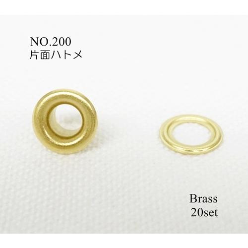〇素材 真鍮〇カラー 真鍮生地色〇サイズ 内径3.8mm 外径7.5mm 足3.8×4mm (写真を参照)〇個数 20個NO.200番の片面ハトメです。キリンス処理を行っていない真鍮生地商品です。小物などレザークラフト、ハンドメイドにぜひお使い下さいませ。※お得な100個セットも販売しています。※片面NO.200番(丸潰)の打ち具が必要になります。ご確認の上、お買い求め下さいませ。