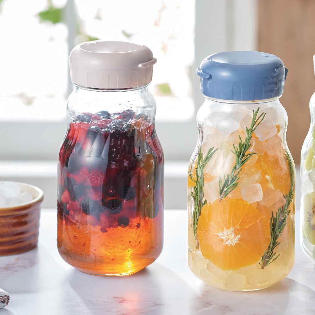 ●自家製フルーツシロップを漬けるのにぴったりなフルーツシロップびんです。