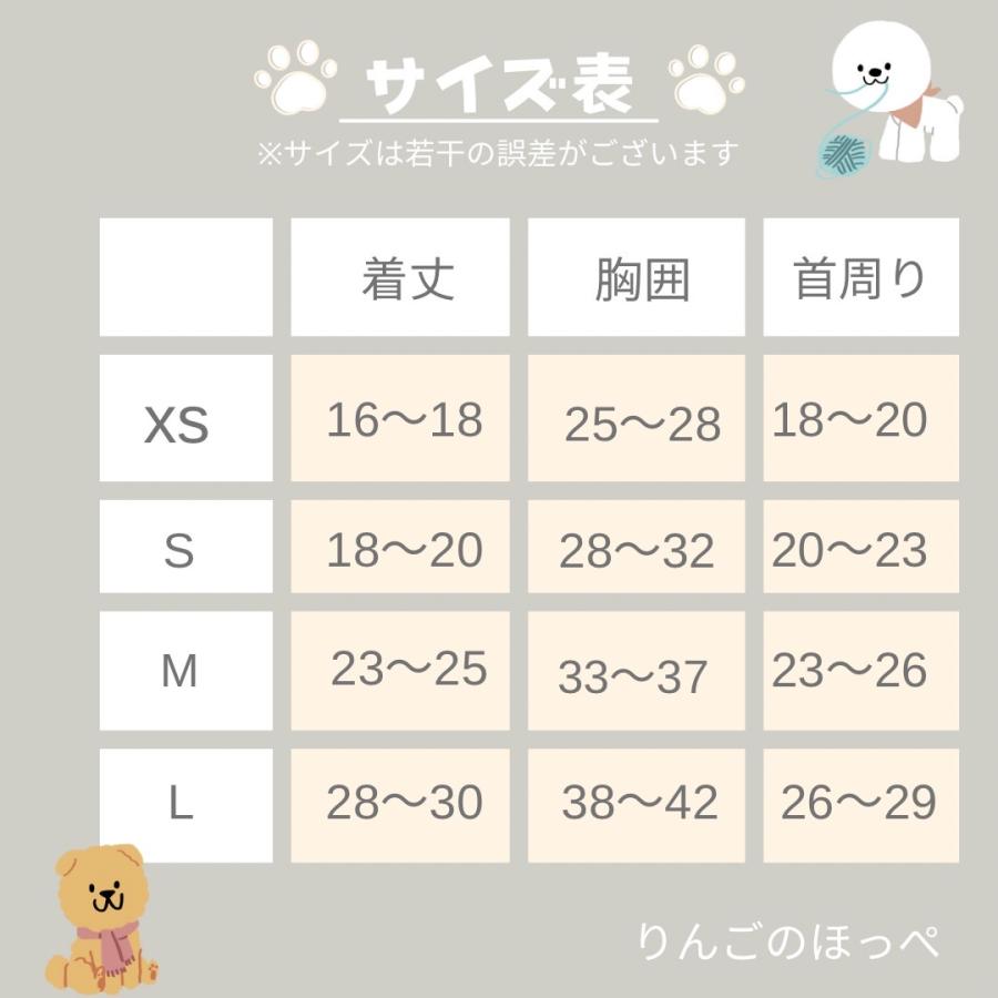 XL:サイズ 着丈 32-34cm 胸囲 44-46cm 首周り28−32cm