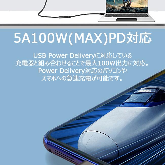 USB PD(Power-Delivery)対応により、最大100Wの超高速充電を実現。