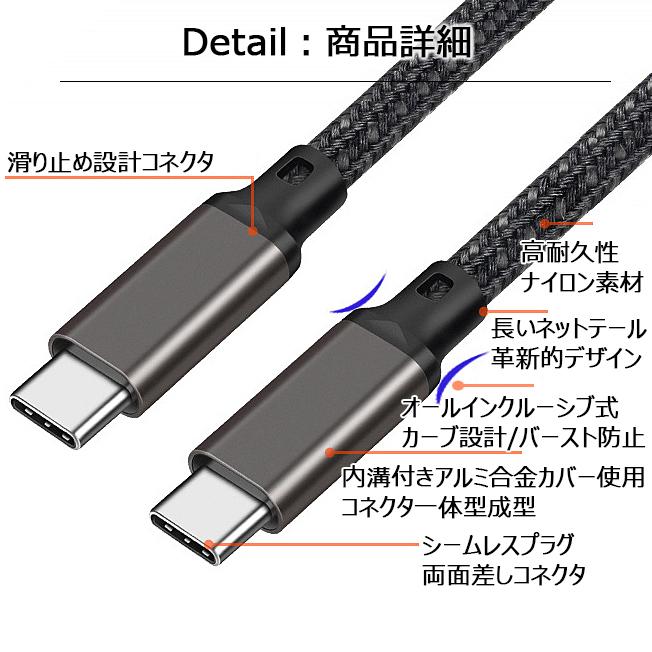 商品仕様:コネクタ形状:USB Type-C(オス)- Type-C (オス)