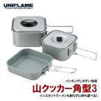 ユニフレーム 山クッカー 角型3 (667705) / コッヘル 3点セット 登山 キャンプ アルミ製 フライパン スタッキング 四角 スクエア