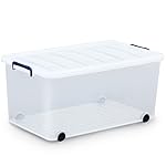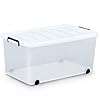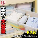 アイリスオーヤマ 収納ボックス 衣装ケース ふた付き 丈夫 頑丈 大型 キャリー 幅44×奥行74×高さ35cm ネイビー クリア