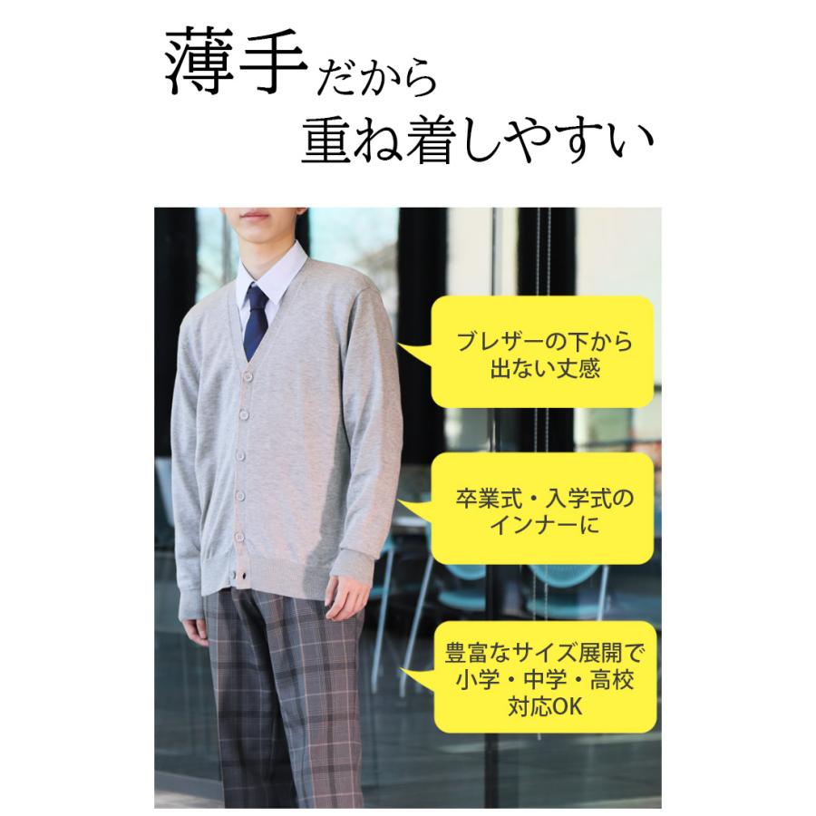 ・無地ニットなので、学校の指定に合わせて色々なシーンで着用できるカーディガンです。