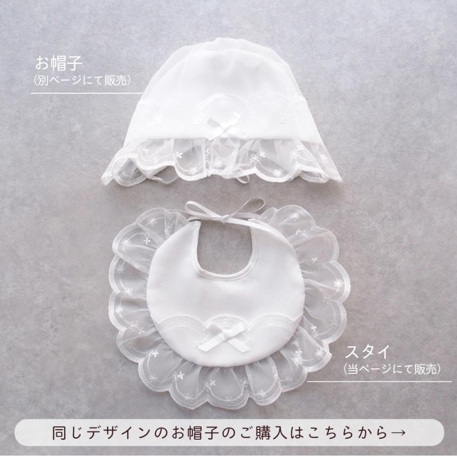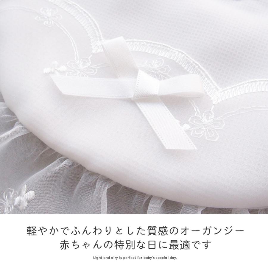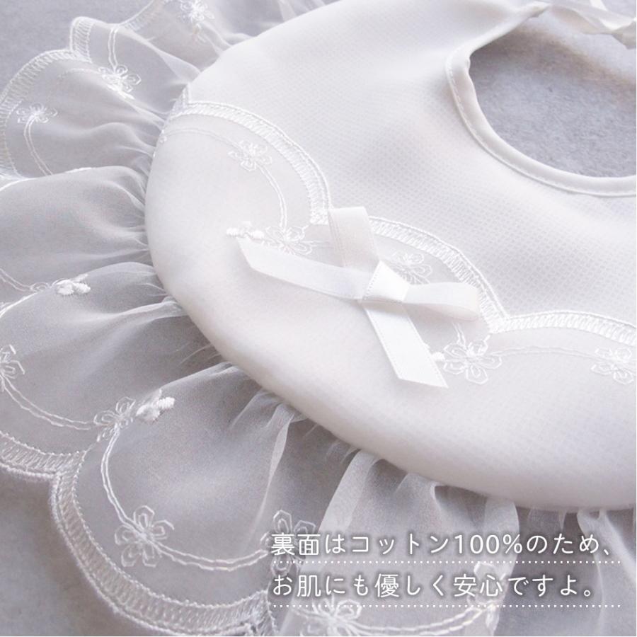 お宮参り セレモニー用 刺繍入りオーガンジーのよだれかけ 生地・縫製ともに高品質な日本製!結び式 サイズフリー(新生児から6か月を目安にお考えください。)裏地は綿100%のガーゼ