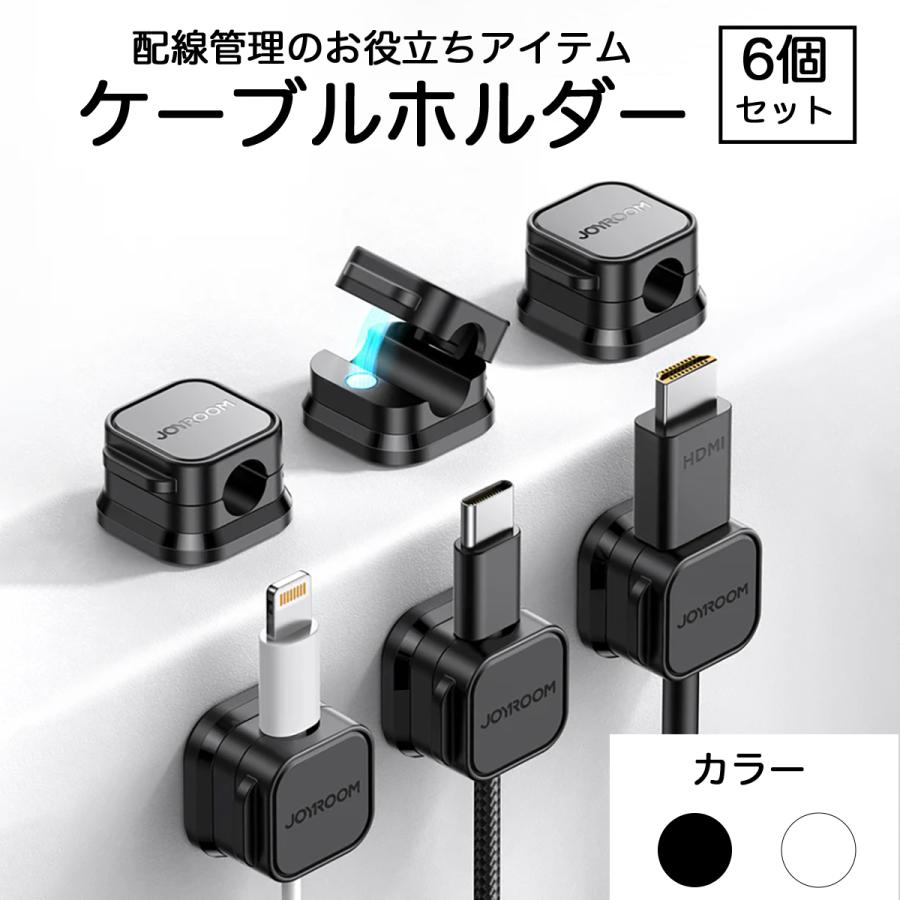 JOYROOM ケーブルホルダー ケーブルクリップ 6個セット マグネット コードクリップ 配線止め 貼り付け 強力粘着 USB配線収納 卓上 デスク 配線整理