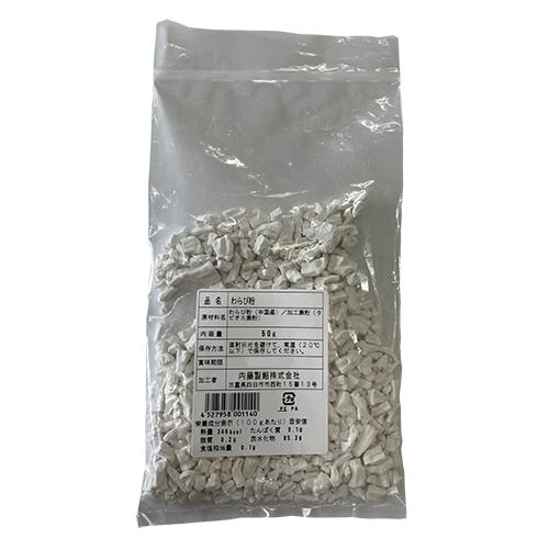 内容量:わらび粉 50g賞味期限:6ヶ月 保存方法:直射日光を避け、常温で保存してください。原材料:本わらび粉(中国産)/タピオカ澱粉商品説明:わらび粉は、わらびの根を臼でつき、水に浸して澱粉を沈殿させ、乾燥させたものです。 本商品は、扱いやすく、また、値段的にもご家庭で使っていただきやすくするために、本わらび粉にタピオカ澱粉を加えております。 国内製造品です。 和菓子屋さんにも使っていただいております。 わらびもち・わらびまんじゅうなどに使用していただけます。