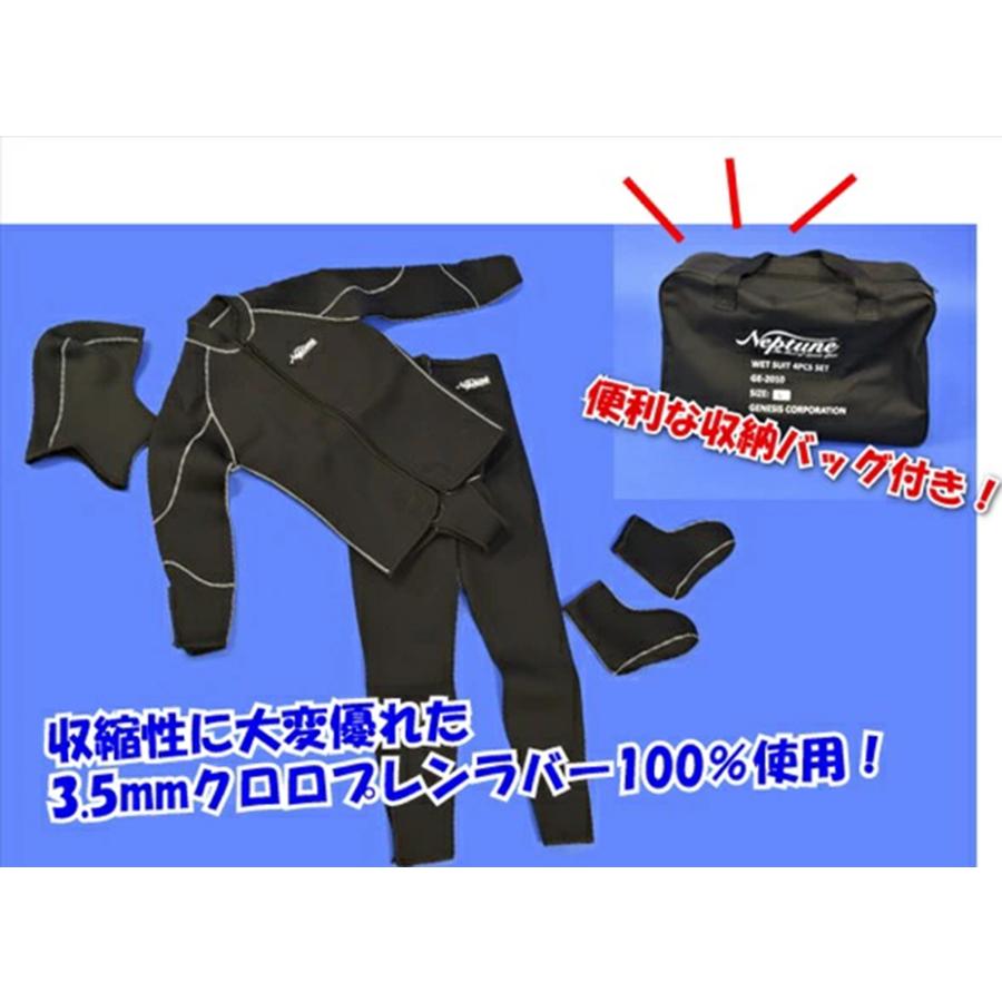 【上着、ズボン、フード、ソックスの4点セット】◆ナイロン収納袋付で持ち運びにも便利!◆塩がみしにくい大型10号ファスナー採用◆大変柔らかい3.5mmクロロプレンラバー100%使用◆伸縮性に大変優れています◆ひっかけ金具はステンレス製でさびにくく、強度も優れています◆両面にナイロンジャージが貼られているので、伸びて着用しやすい!◆持ち運びに便利な収納バッグ付き◆サイズは若干の誤差があります素材:クロロプレンラバー100%※サイズには若干の誤差があります。