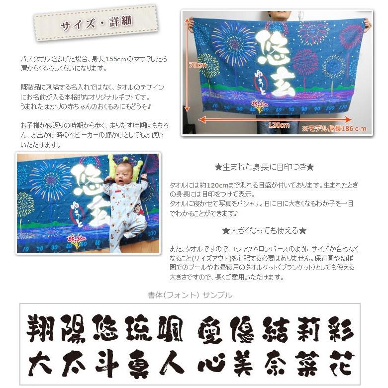 花火大会をイメージした和風デザインのお名前入りの今治製バスタオルです。