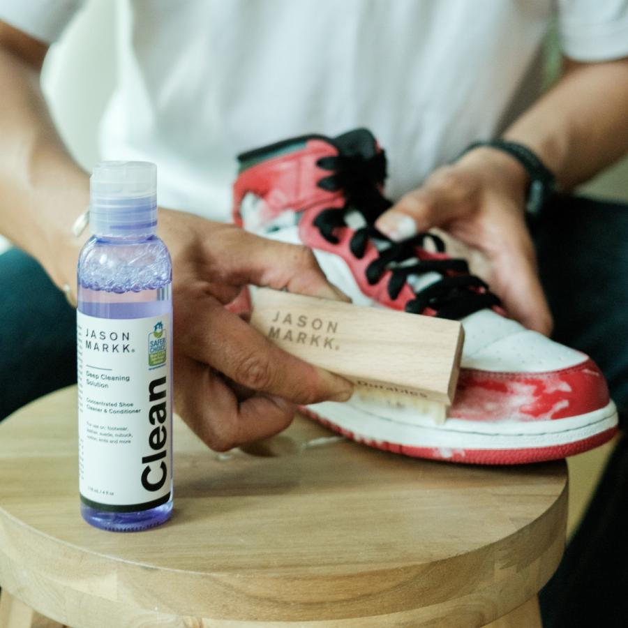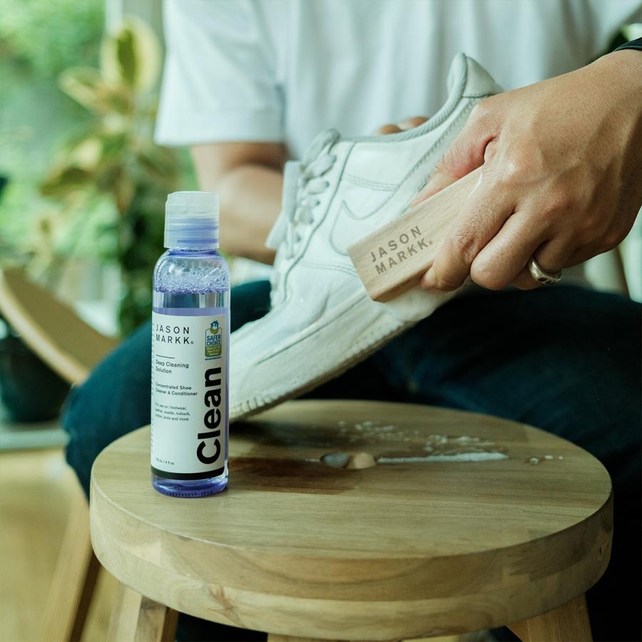 ジェイソンマークの8oz ディープクリーニングソリューションは、シューズやウェアに深く入り込んだ汚れを浮かせて落とす洗浄力に優れた濃縮タイプの洗剤です。優しく泡立つ洗剤が、素材を傷めることなく汚れを落とし、コンディショニング効果で風合いも保ちます。レザー、スウェード、ヌバック、キャンバス、コットン、ニットなどの様々な素材や色に安心してご使用いただけます。