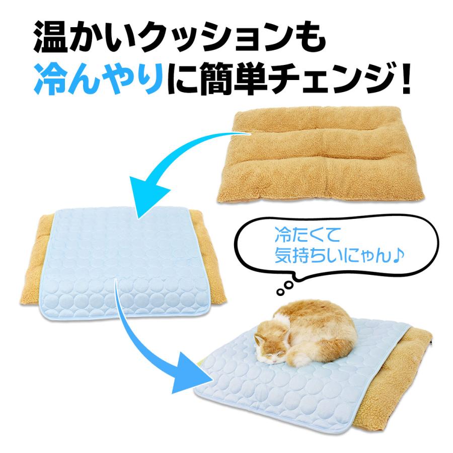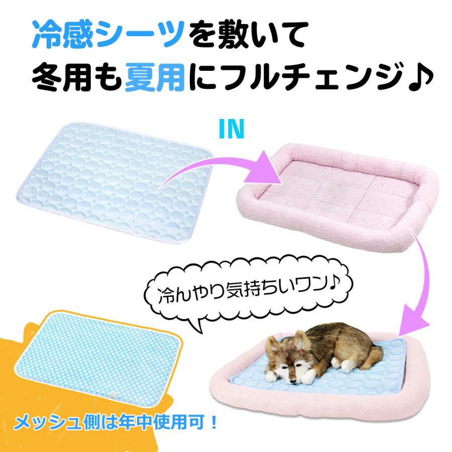 【商品説明】暑い夏対策に!ペット用ひんやり冷感ベッドシーツです。表生地は接触冷感の生地を使っているので、触るとひんやり涼しく快適!裏面はメッシュ生地を使っているので、通気性が良く蒸れにくい!夏の暑い日にワンちゃんや猫ちゃんはフローリングの上に横たわっていませんか?少しでも冷たい場所を求めているのがよくわかりますよね♪こちらのペット用ひんやりシーツを敷けばひんやり快適♪冬用のペットベッドに敷くだけで、夏用ベッドに早変わり!もちろん単体でもご利用いただけますよ♪