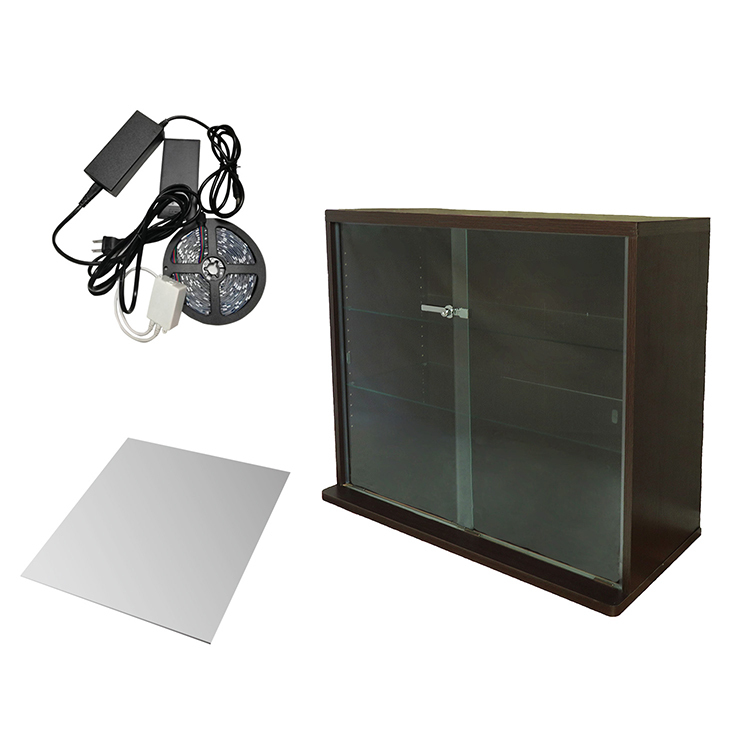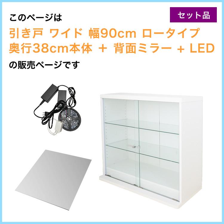 [福袋] 地球家具 コレクションラック DIO ディオ 引き戸 ワイド ロータイプ 本体 鍵付 背面ミラー+RGB対応LED付き コレクションケース ガラスケース ディスプレイラック ( 幅90cm 奥行38cm 高さ83.5cm タイプ 深型 ホワイト , ブラック , ブラウン )