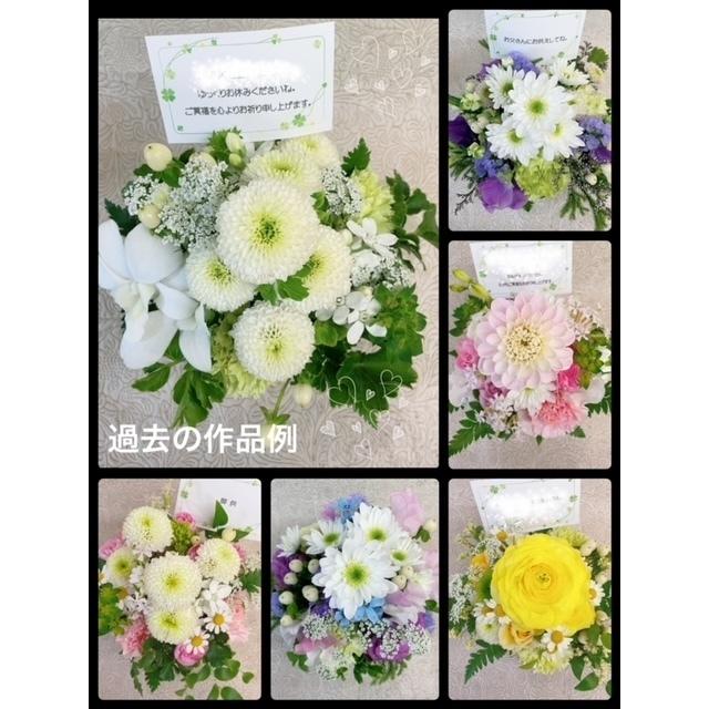使用花材 季節の花を使ったお任せアレンジサイズ 高さ20センチ 横幅約20センチなど花器や花材で大幅に変わります。