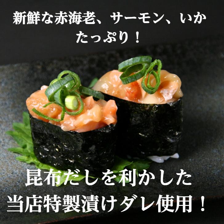 新鮮なアカエビ サーモン イカが昆布仕立ての漬けダレで美味しさアップ! 冷凍【店内の送料無料商品と合わせ買いで、送料無料にできます!】