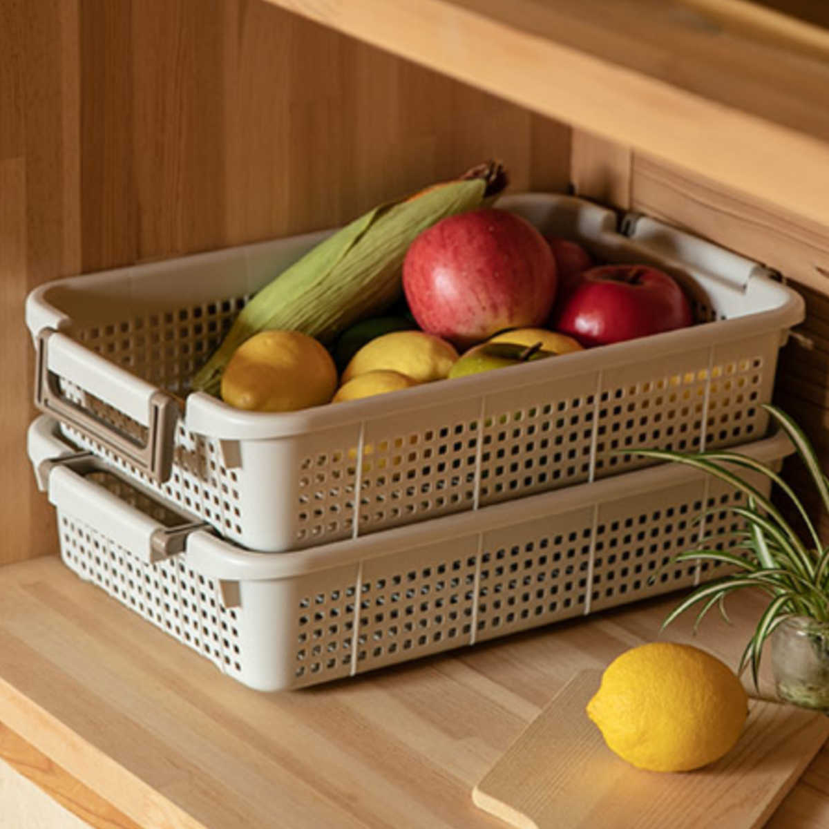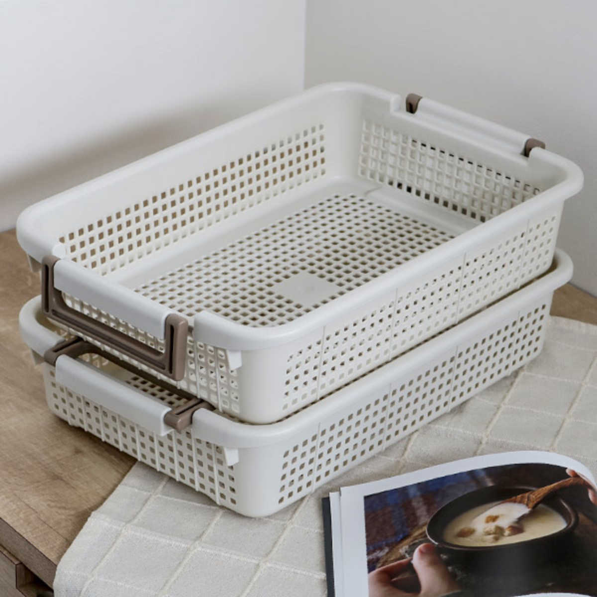 ●積み重ねができる収納バスケットです。