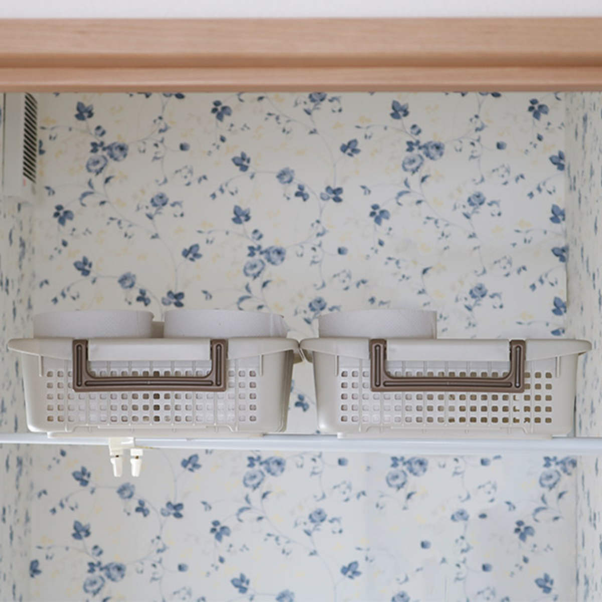 ●突っ張り棒(別売り)とセットで使って収納力をアップさせることもできます。