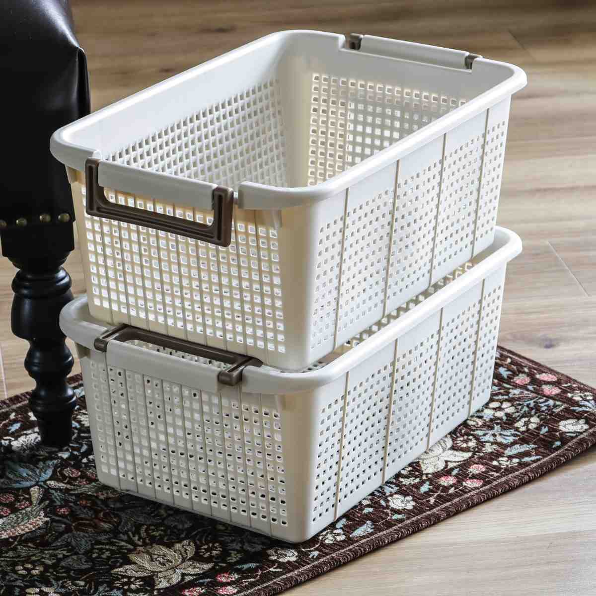 ケース ボックス 収納バスケット プラスチック ストッカー クローゼット収納 日本製 スタッキングバスケット 約 幅 30 cm センチ プラスチック製 取っ手付き 持ち手 取っ手 ハンドル 付き 付 かご カゴ 籠 収納カゴ 収納かご 大きめ 新聞紙 雑誌 デスク周り 収納用品 ランドリー収納 水周り 水回り ランドリー おもちゃ箱 おもちゃ入れ 押し入れ収納 押入れ収納 クローゼット 押し入れ 押入れ 棚上収納 棚上 おしゃれ シンプル キッチン収納 キッチンストッカー 野菜ストッカー タオル収納 タオル 衣類収納 洋服収納 洋服 衣類 リビング収納 LH7850