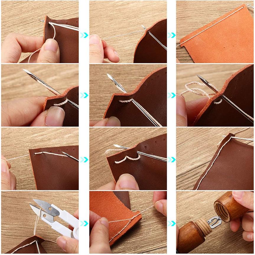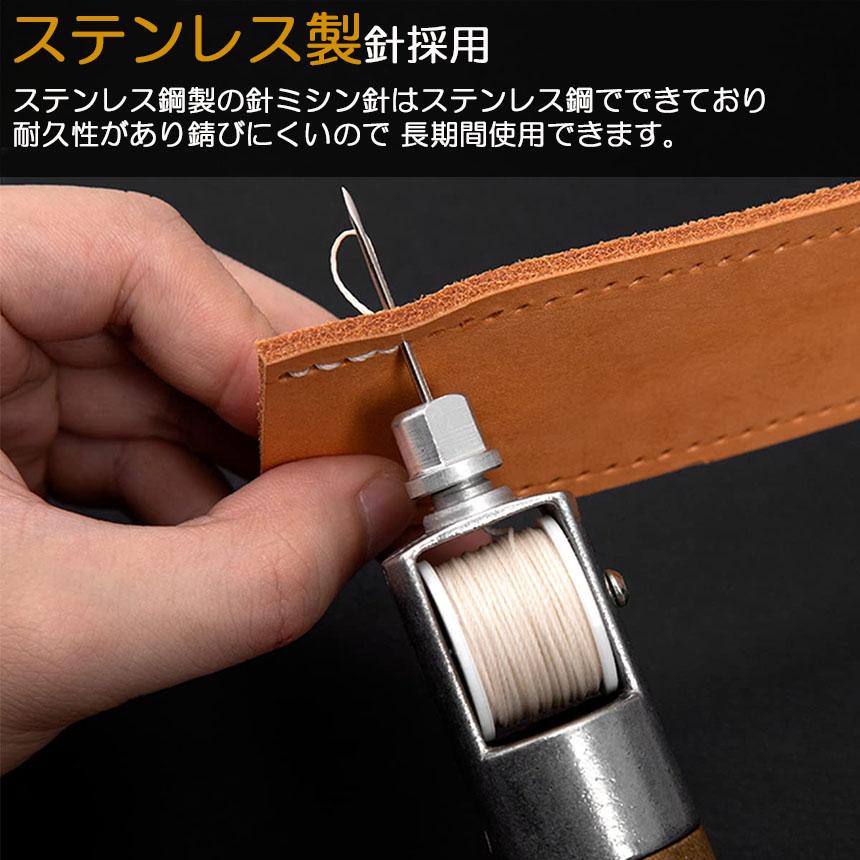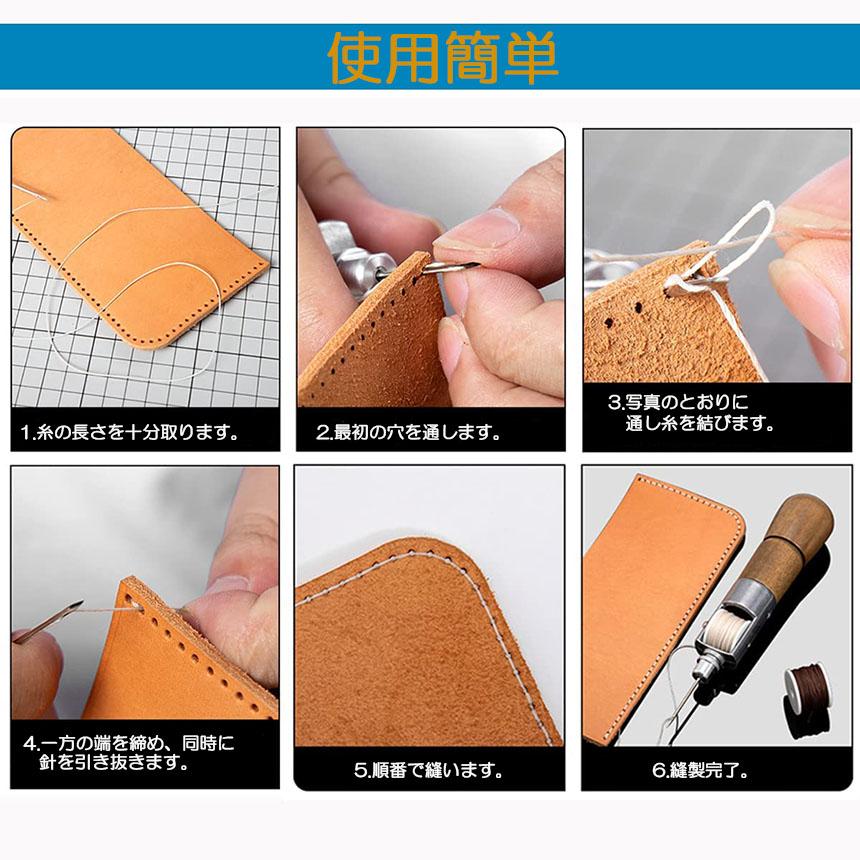 【使用方法】1.針を革や布など縫いたい場所に刺し、反対側へ糸を出した状態で針を抜きます。2.次の場所にもう一度針を刺し、ス