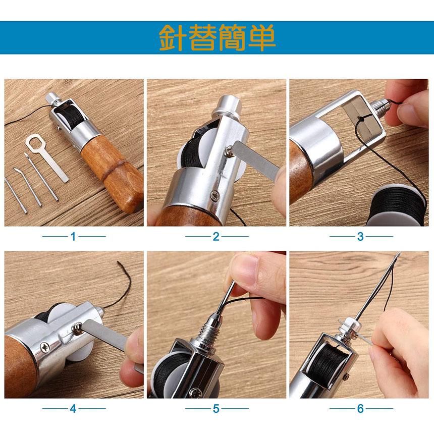 【手動ミシン・皮革用ぬい針】革製品や厚手の生地でも楽々ほつれ修理や手直しなど、初心者でも簡単にしっかりと縫うことができます。2サイズの針と1ロールのミシン糸を備えた木製ハンドル付きのユニークなミシン千枚通し。