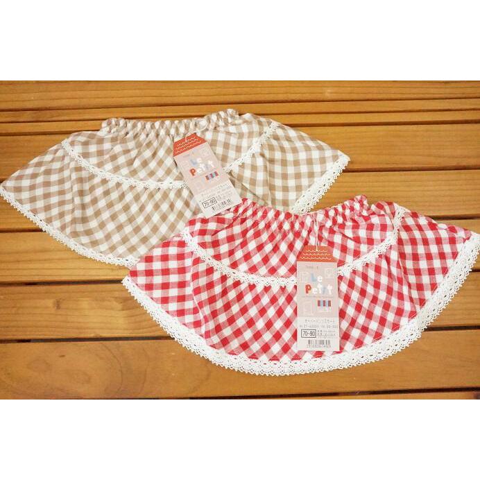 ●サイズ 70-90cm ●カラー ベージュ/レッド●素材 綿100%(フライス) ●日本製●フリフリスカーティタイプのオーバーパンツです。●おむつの上からはかせてあげて下さい。●発売元/シンクビー
