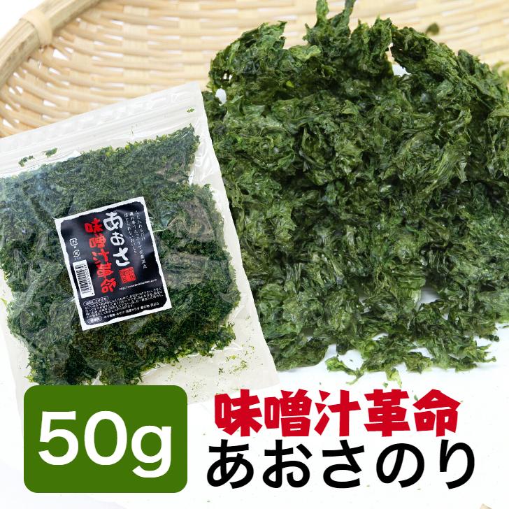 味噌汁革命あおさ海苔50g=====================================================名 称 あおさのり原材料名 ヒトエグサ(国内産)内 容 量 50g入り賞味期限 製造日から4ヶ月(未開封)保存方法 直射日光、高温多湿を避け保存してください。販 売 者 株式会社荒木海苔店 名古屋市中村区名駅5丁目21−6 052−582−0007海苔 青さのり 味噌汁革命あおさのり50g あおさ海苔 メール便送料無料 あおばら