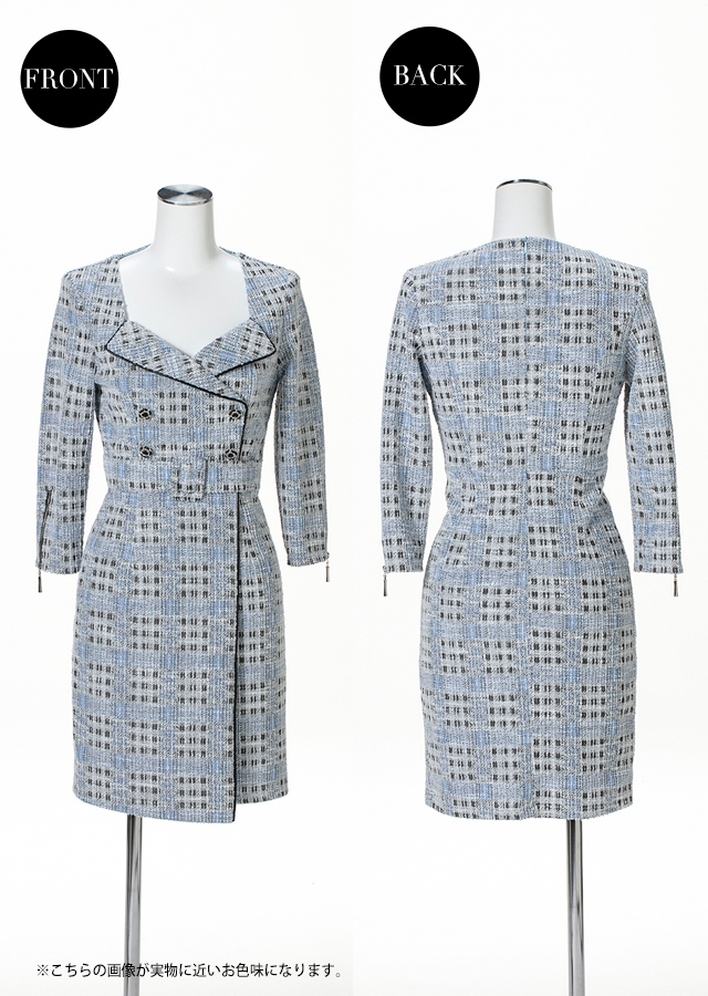 ジャケット風のデザインがスタイリッシュなミニワンピース。