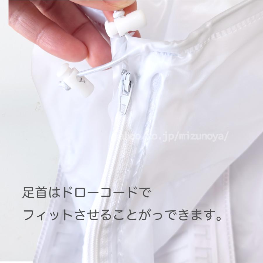 ドローコード付きでカバーのズレ落ちを防止し、ズボンの裾が濡れることを防ぎます。