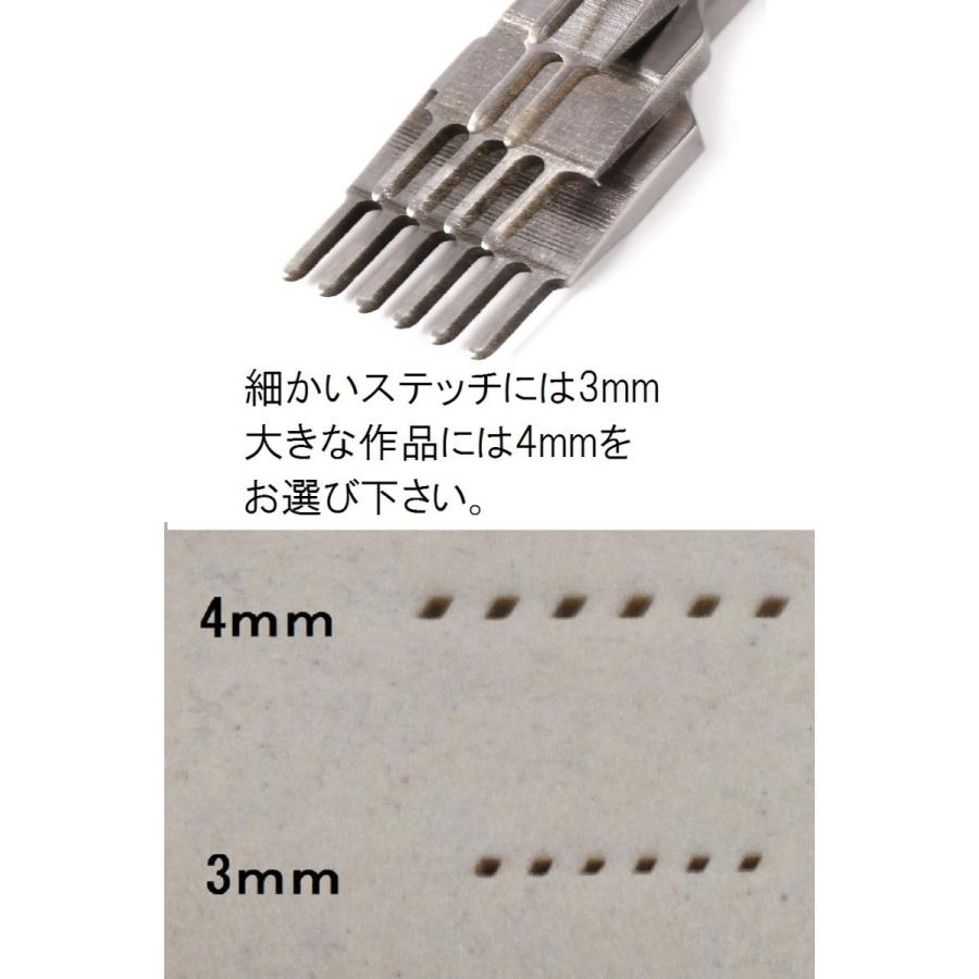 縫い目を着けるための工具菱目打ちです。