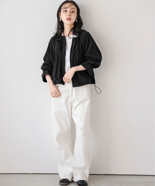 キーワード:ブルゾン アウター レディース ジップ 無地 キレイめ デート フェミニン 夏 春 大人カジュアル