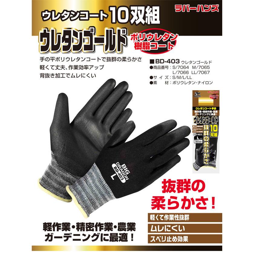 【商品詳細】メーカー富士グローブ品番BD-403素材繊維部:ナイロン すべり止め部:ポリウレタン特徴抜群の柔らかさ!ウレタンコーティング背抜き手袋!軽くて作業性抜群!軽作業・精密作業・農業・ガーデニングに最適!お得な10双組!サイズS,M,L,LLカラーブラック