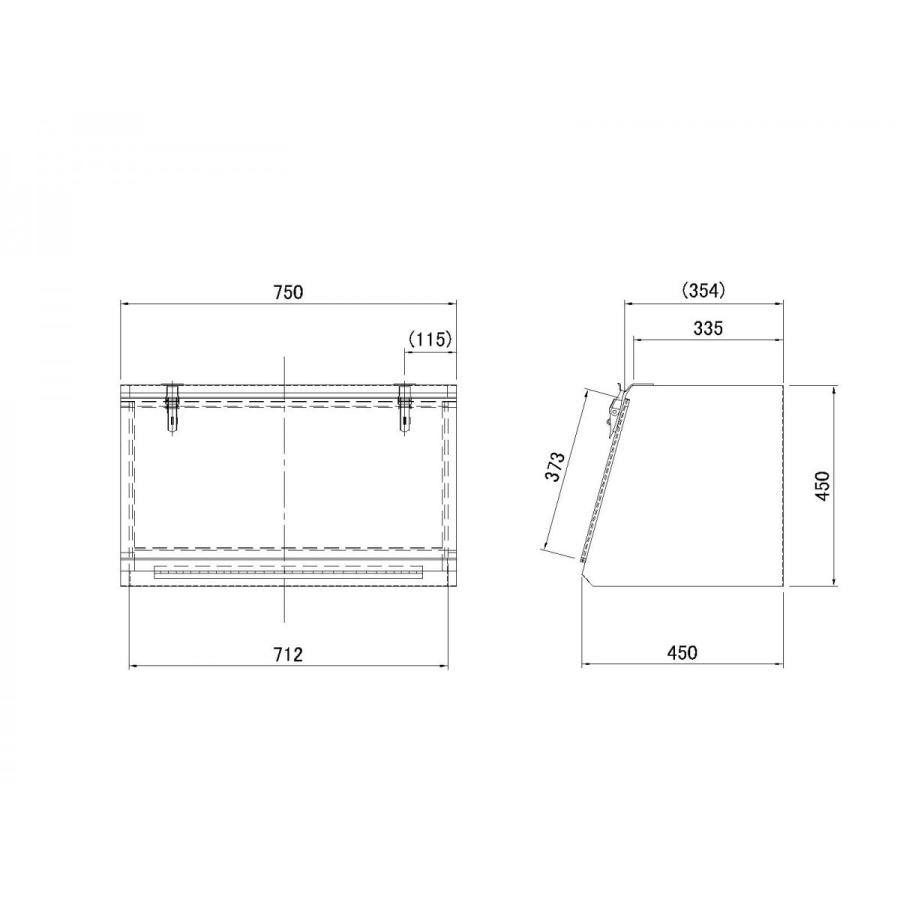 寸法//長さ:750×高さ:450×奥行:450mm、本体板厚:0.8mm、蓋板厚:1.0mm、重量:11.10kg