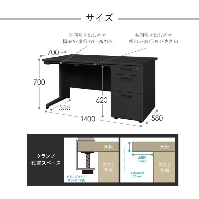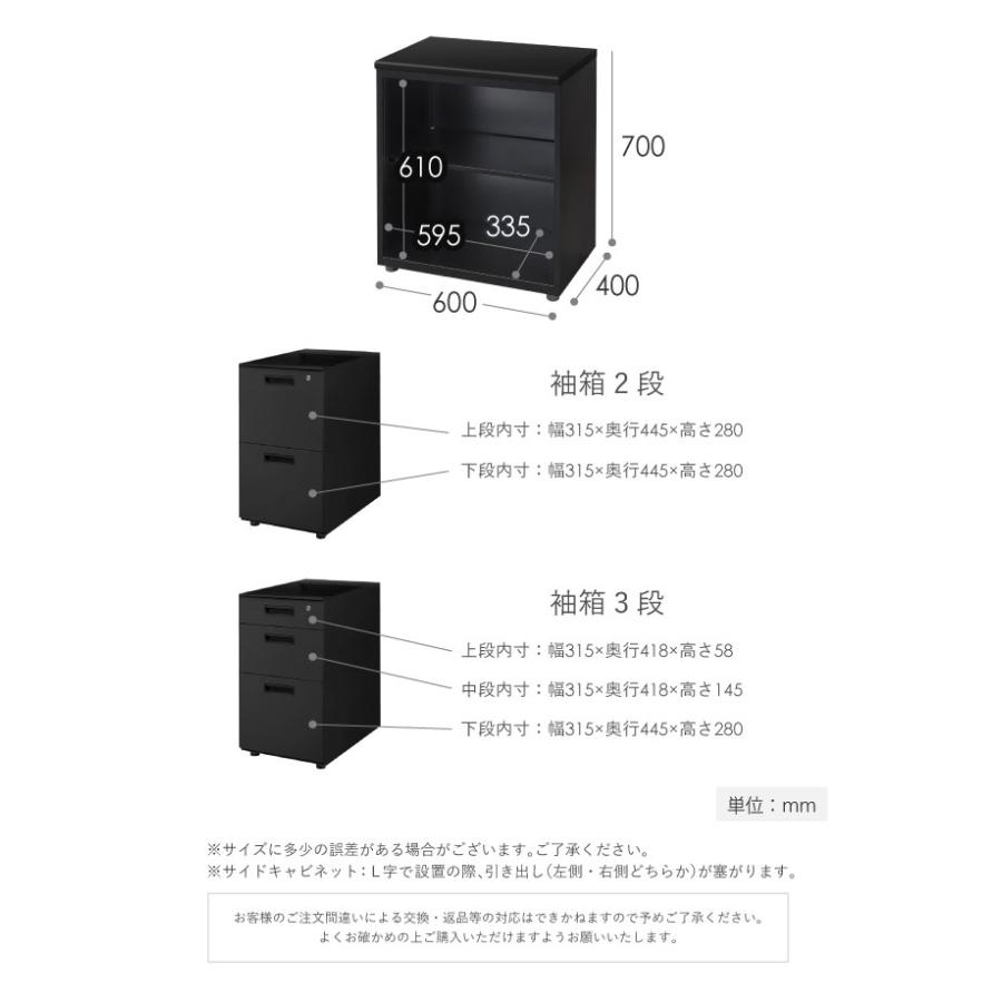 デスク(LKD-147BK)×1台、サイドキャビネット(LD-C2)×1台