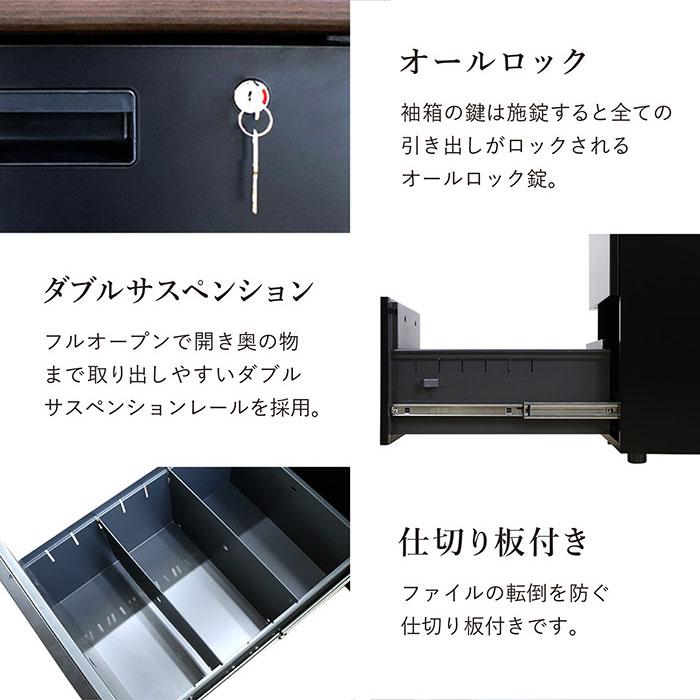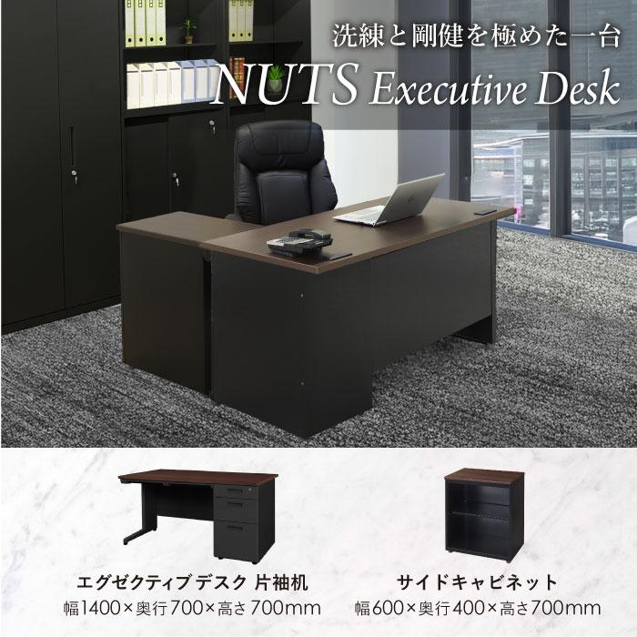デスクセット サイドキャビネット エグゼクティブデスク 役員机 木目 ブラウン ブラック 片袖机 片袖デスク オフィスデスク 事務机