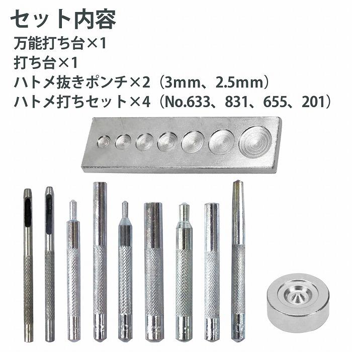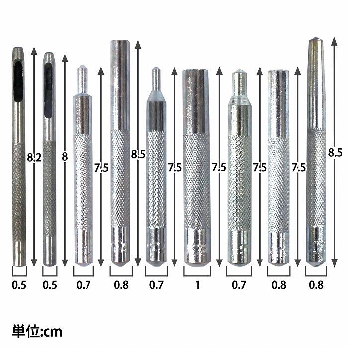 2.5mmと3mmの穴を開けるハトメ抜きポンチも付属しています。
