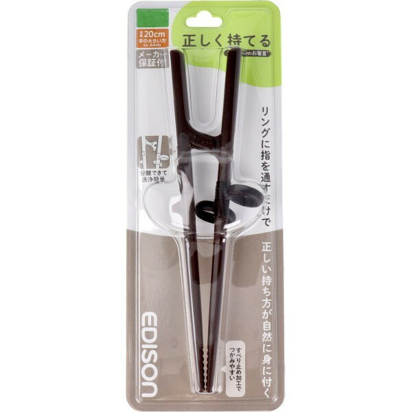 エジソン KJ103271 ダークブラウン 成人男性・手の大きい方 エジソンのお箸III 右手用 20CM