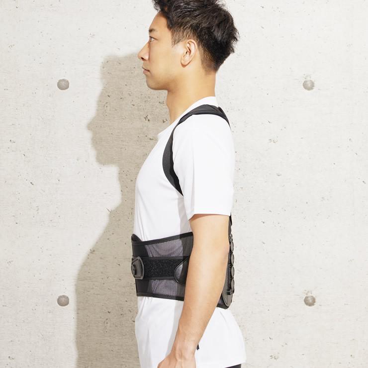 着用中は、肩甲骨を引き寄せて腰を立てて、正しい姿勢に補正します。