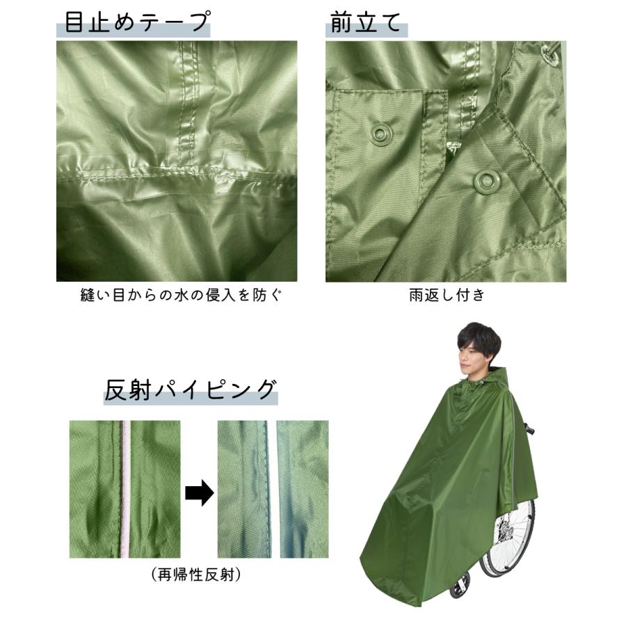 レインコート ポンチョ 車イス 車いす 車椅子 ネイビー カーキ ターコイズ 介護 通院 フリーサイズ フリー 防水 大人 紳士 婦人 男 女 男性 女性 メンズ レディース アウトドア 雨 rain レイン 安全 安心 反射 反射テープ リフレクタ 台風