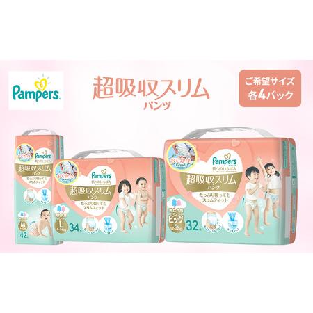 ■ 容量 ●パンパース超吸収スリム パンツタイプ 4パック ※サイズ1種お選びください。 ・Mサイズ(42枚):6〜12kg ・Lサイズ(34枚): 9〜14kg ・ビッグサイズ(32枚):12〜22kg タイプ:【常温】
