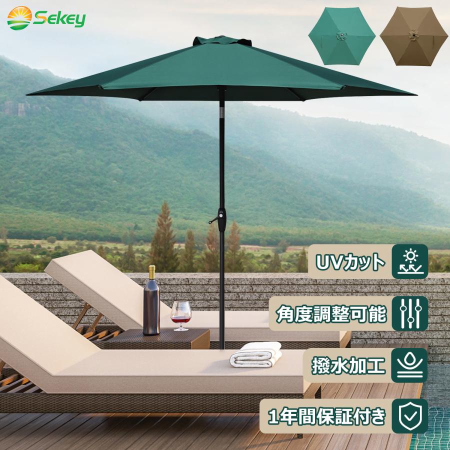 【チルト機能、角度調整可能】日差しの角度に合わせて、パラソルの角度を手軽に調節可能。最大調節角度: ±30°。【チルト機能使用時の高さ】 高い側:約2.7m、低い側:約1.36m